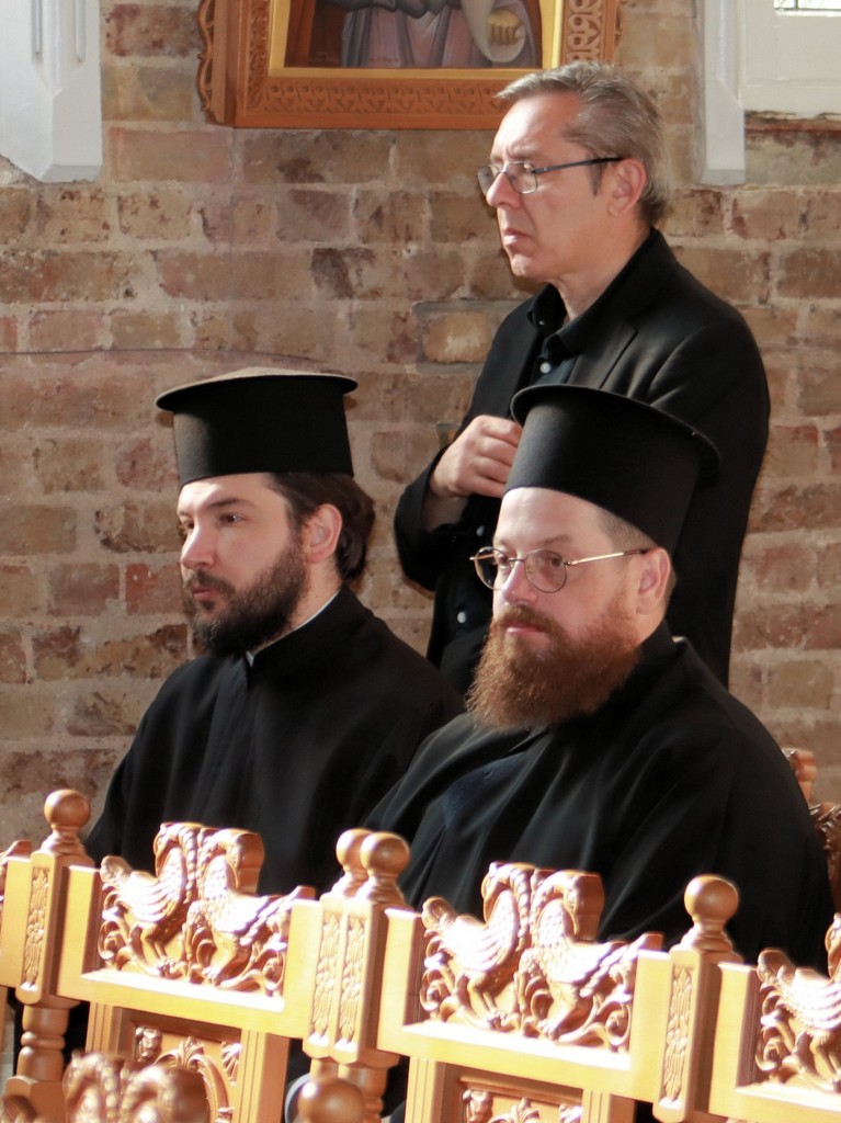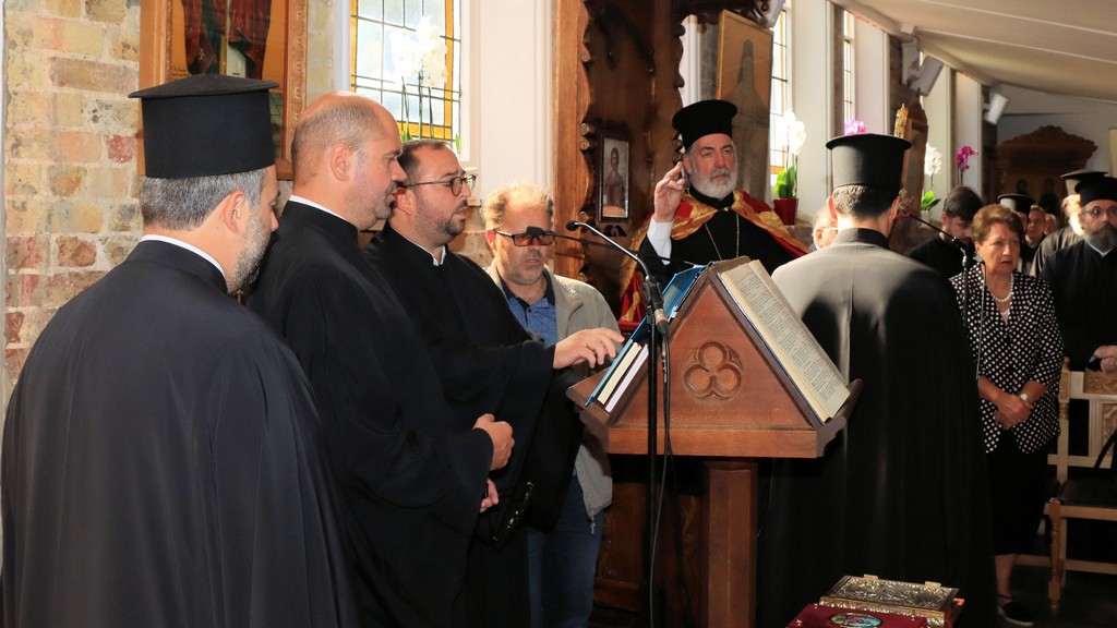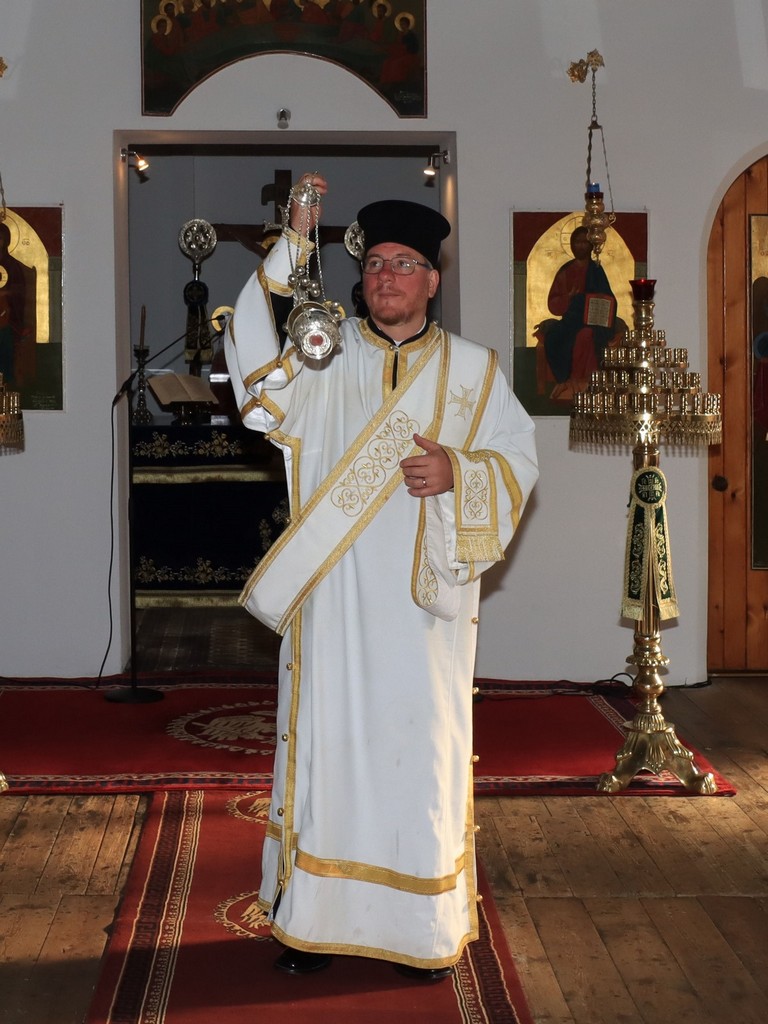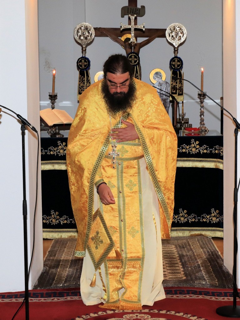 Ο Σεβασμιώτατος χοροστάτησε στη Θεία Λειτουργία που ετέλεσε ο Αρχιμ. κ. Βησσαρίων Κοκλιώτης μετά του Διακόνου κ. Nikita Banev, οι οποίοι εόρταζαν επίσης.
